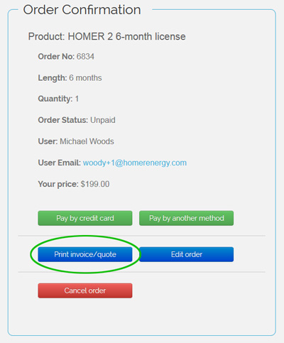 This article explains how to create and print a quote for the purchase of HOMER 2 at the HOMER users website, users.homerenergy.com. Most of the process for creating a quote is the same for placing an order. Note: For compatibility with the HOMER website, we strongly recommend using either the Firefox or Chrome browser.