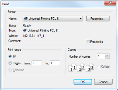 Step 5 - Your browser's print dialog will appear, similar to the example below. Set the printer name and other options, then print your quote.