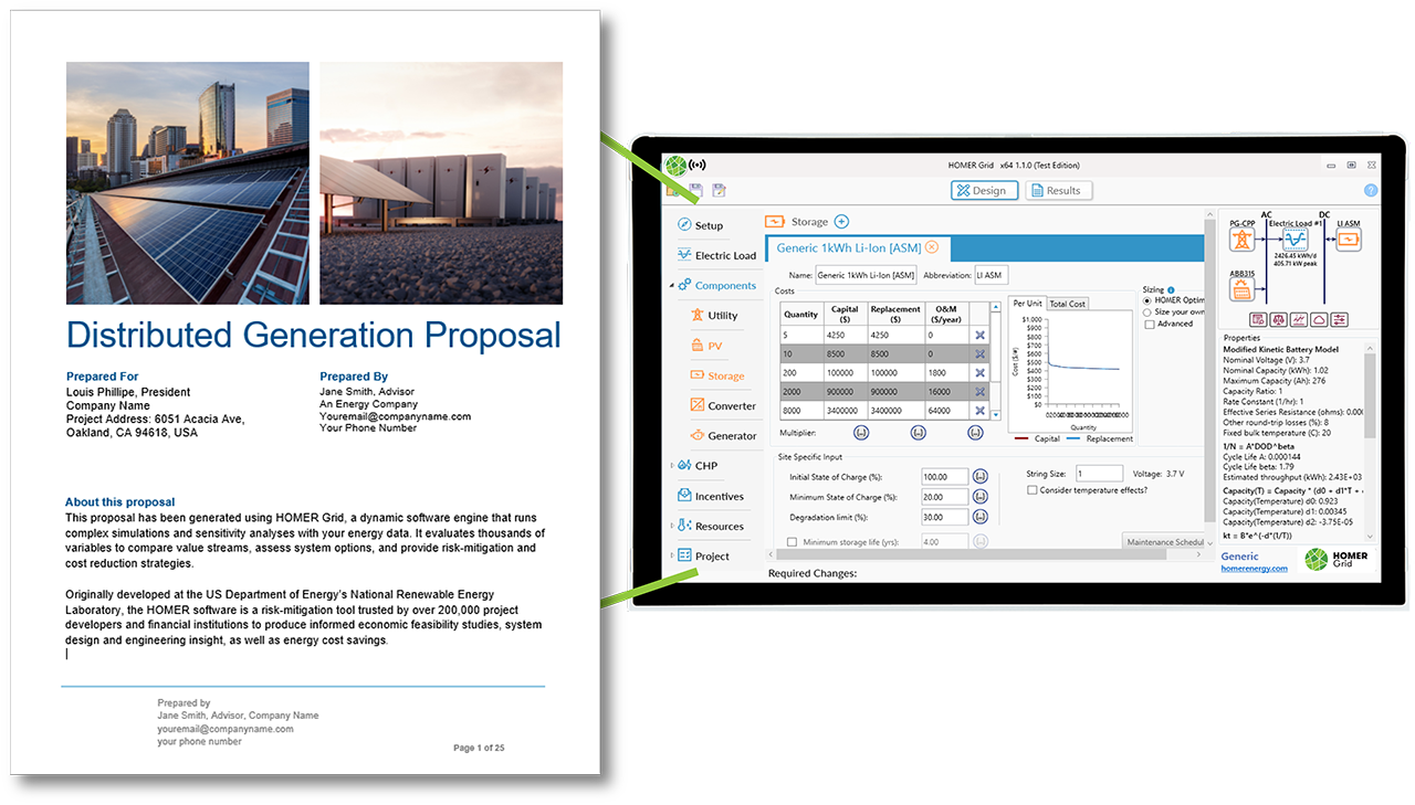 The HOMER storage model is the most accurate and sophisticated model on the market, based on the input of thousands of users. HOMER Grid accurately models battery life and performance for the duration of your project, so you know exactly what to expect.