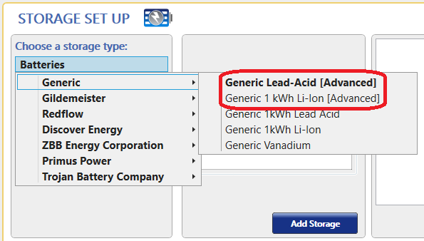 The Advanced Storage Module unlocks the Modified Kinetic Battery Model in HOMER. The Modified Kinetic Battery Model (MKBM) includes rate dependent losses, changes in capacity with temperature, variable depth-of-discharge for cycle life, and increased degradation rate at higher temperatures. With the Advanced Storage Module, you can create new batteries that use the MKBM, add such batteries to your HOMER models, and calculate results for HOMER models that include a battery with this model.
