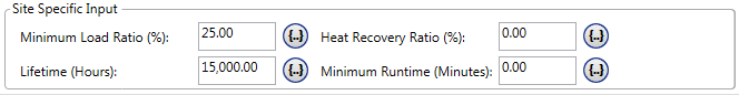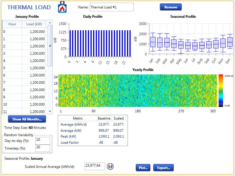 A thermal load can model a building, an industrial process, equipment such as a thermal absorption chiller, and any other system that consumes heat energy. The combined heat and power module adds the parameter "Heat Recovery Ratio" to the generator menu. To set up a combined heat and power system, set this parameter to a number greater than zero.