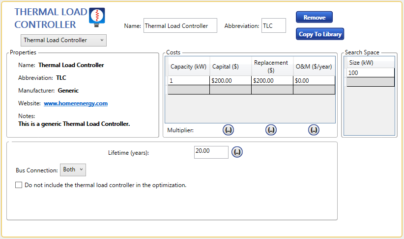 The thermal load controller converts extra electricity into heat. The option 'do not include thermal load controller in the optimization' will ignore the costs of the thermal load controller and will allow unlimited capacity.