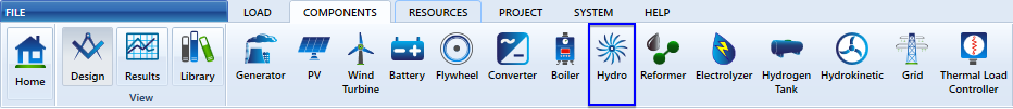 You can specify the cost, available head, design flow rate, operating range, and losses of your hydro system in the hydro component menu.