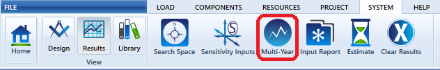 The Multi-Year module adds several features to HOMER's results. You can look at each year of the project life in the Simulation Results. The Multi-Year module also adds the Multi-Year plot, which allows you to plot any result quantity over the life of the project.